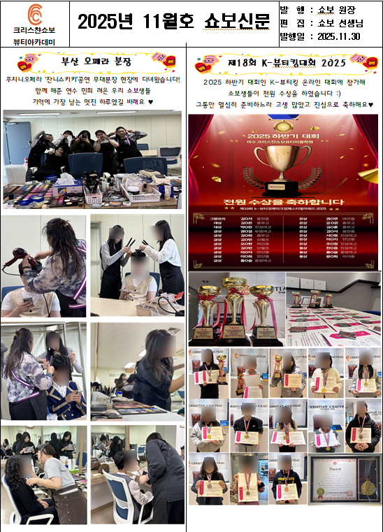 여수미용학원/ 여수쇼보/ 여수크리스챤쇼보뷰티미용학원/ 쇼보 신문/ 11월 호