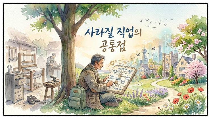 2부 사라질 직업의 공통점 직업이 아니라 ‘업무 방식’의 문제입니다 “앞으로 어떤 직업이 사라질까요?” 많이 묻는 질문입니다. 하지만 질문을 조금 바꿔야 합니다. 사라지는 것은 ‘직업 이름’이 아니라 그 안에 들어 있는 업무 방식입니다. 1. 반복적인 일을 많이 하는 업무 AI가 가장 잘하는 일은 무엇일까요? 같은 일을 빠르게, 정확하게 반복하는 것입니다. 예를 들어 정해진 기준에 따라 분류하기 일정한 패턴으로 데이터 처리하기 매뉴얼대로 응답하기 이런 일은 속도도 빠르고 실수도 적은 AI가 훨씬 유리합니다. 중요한 건 직업 이름이 아닙니다. 그 직업 안에 반복 업무가 얼마나 많은 지가 더 중요합니다. 같은 직업이라도 반복 비....... <img src="https://blogthumb.pstatic.net/MjAyNjAzMDFfMjQ4/MDAxNzcyMzY3OTY4NjQy.E1vSB7dEoCUXlKNZJXxzUnrar3BSwl2Ju5QAinn84esg.oRmPQcLr6g_bWKLOcpn9H5d58LXhswHSTgQeEDARIScg.PNG/image.png?type=s3" />