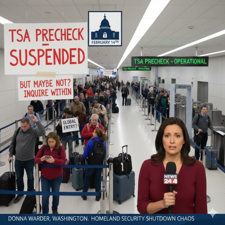 The Department of Homeland Security said earlier that it suspended the TSA PreCheck and Global Entry airport security programs while there's a partial government shutdown. Now it's saying that PreCheck will remain operational, but it's not clear whether Global Entry will be affected. Both programs are meant to help speed registered travelers through security lines. The partial government shutdown began February 14th after Democrats in the White House couldn't reach a deal on legislation to fund Homeland Security. Donna Warder, Washington. 1️⃣ The Department of Homeland Se....... <img src="https://blogthumb.pstatic.net/MjAyNjAyMjZfMTM4/MDAxNzcyMDY3Nzc4NzAy.mzMBWCorIS0GCAlqWri8n_sqlC-F27nkKWVJev5-BT8g.u6xGCJ97j97sXXyOdkKs7GLsq0Z5B8Ah1wFlJidQFhgg.JPEG/unnamed_%2873%29.jpg?type=s3" />