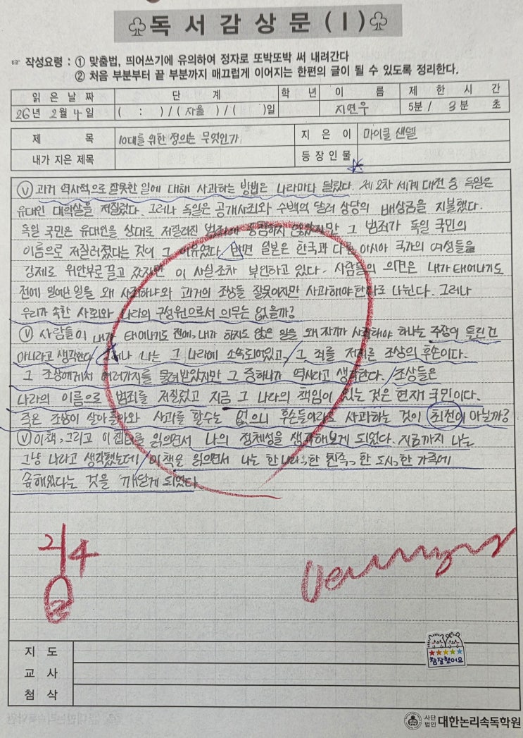 [2026년 학생작품] - [ 대한논리 정독 논술학원 대방 신대방 신길 교육원]독서논술