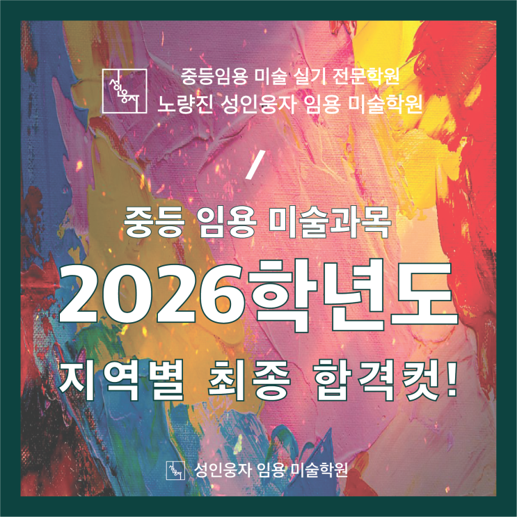 2025(2026학년도) 중등 미술임용 최종 합격 컷 안내! "2026 중등 미술 임용 합격을 위해 반드시 숙지해야 하는 정보! - 노량진 성인웅자 임용 미술학원