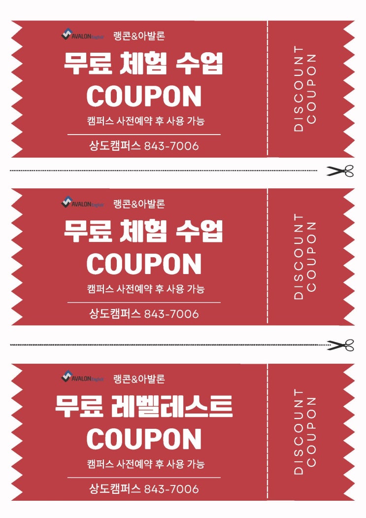 [이벤트] 상도영어학원 랭콘&아발론교육 무료체험 수업 쿠폰 및 무료 레벨테스트 쿠폰