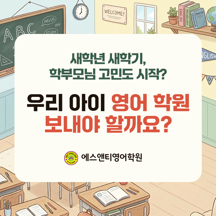 안녕하세요, 사당 영어학원 에스앤티입니다 :) 새학년 새학기가 시작되고 벌써 2주가 지나가고 있습니다. 아이들은 새로운 환경에 열심히 적응하고 학부모님들도 아이들의 방학기간 이후 등하교 루틴에 조금씩 익숙해지고 계실 시기라고 생각되는데요. 새학기가 시작된 이 시기, 동시에 시작되는 고민이 있습니다. 우리 아이 영어학원 언제부터 보내야 할까요? 아직은 너무 이른 것 같은데, 남들은 다 하고 있는 것 같아서 걱정돼요. 실제로 요즘 학원 상담이 부쩍 늘어나고 있어 오늘은 학부모님들께서 한번쯤 생각해보셨을 현실적인 고민에 대한 이야기를 해볼까 해요. 많은 학부모님들의 고민에 사실 정답이 딱 하나로 정해져 있지는 않습니다....... <img src="https://blogthumb.pstatic.net/MjAyNjAzMTNfMjIx/MDAxNzczMzcwODE1NDg4.GVjc4xfDoyGzJUG_w4O8r29CTbJG6iPxSB9E8WAWCVAg.V0u6uPw5VrKCarrbcHf96v-onnFyrEozICqWCT6AG9kg.JPEG/01.jpg?type=s3" />