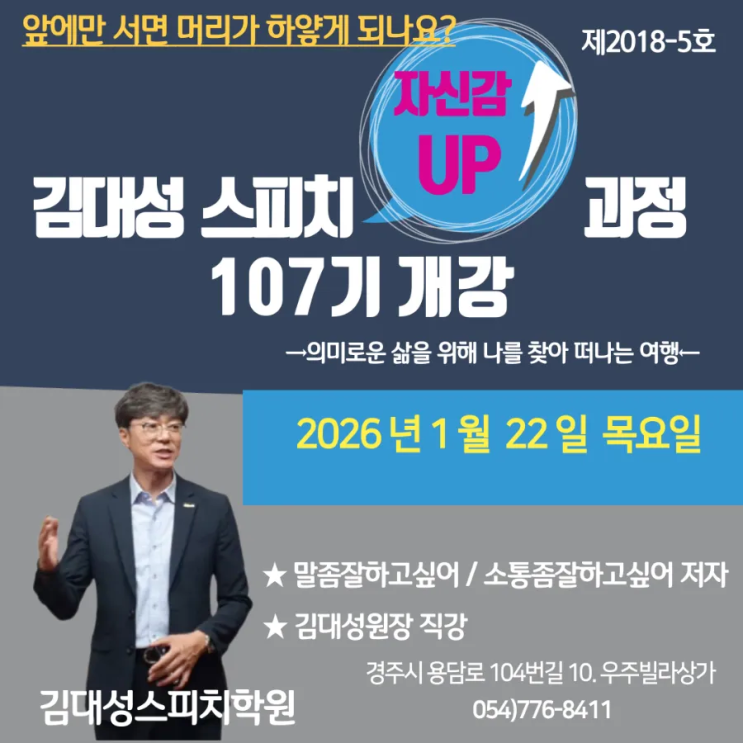 등록번호872-94-00665 제2018 - 5호 ~~~~~~~~~~~~~~~~~~~~~~~~ 의미로운 삶을 위해 나를 찾아 떠나는 여행! 나 자신에게 당당한 삶, 내가 될 수 있는 최고의 내가 되는 삶, 우리 모두가 원하는 삶의 모습입니다. 왜냐하면 나라는 존재는 그 자체로서 의미로우며 아름답기 때문입니다. 그렇게 되기 위해서 내 생각의 주인이 되어야 합니다. 나, 가정, 직장, 단체에서 당당한 나로 바로 설 수 있을 때 우리는 진정한 나로서 행복한 삶을 살아갈 수 있을 것입니다. 김대성스피치 연구소는 여러분들의 의미로운 삶을 찾아 떠나는 여행길에 동반자가 되겠습니다 김대성 스피치는... 김대성스피치는 생각하는....... <img src="https://blogthumb.pstatic.net/MjAyNjAxMDhfNzUg/MDAxNzY3ODgxNjE5MTAx.9TGrSwHDhu5E28JBTWnr_MkKgJ9AkUsREHDgQ--1TBUg._nbRbwCvbIesvegrrp3hAXHSlLDj-UzoieLg6kwcIPwg.PNG/900%A3%DF%C1%A6%B8%F1%C0%BB%A3%AD%C0%D4%B7%C2%C7%D8%C1%D6%BC%BC%BF%E4%A3%DF%A3%AD001%A3%AD1.png?type=s3" />