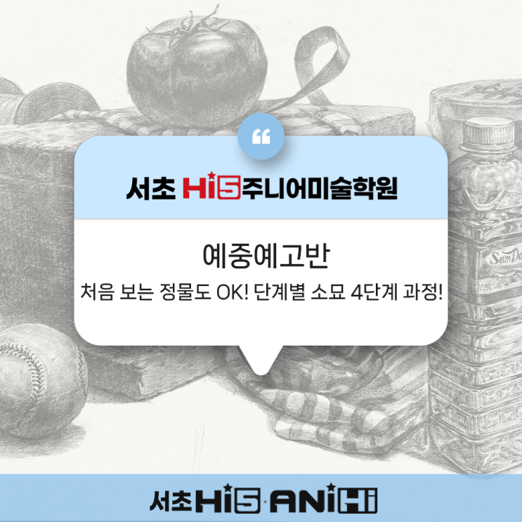 [서초 하이파이브 주니어 미술학원] 2026 예중 예고 입시 필독 | 처음 보는 정물도 100% 성공하는 단계별 소묘 4단계 과정