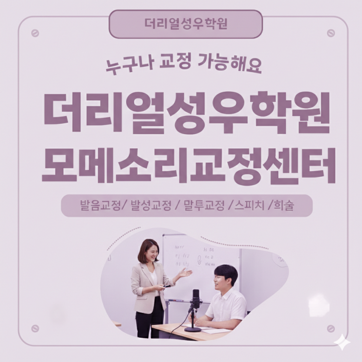 서초동 스피치 잘하는 방법, 교대스피치학원 맞춤교육 당신의 목소리에 진심을 담는 곳, 서초 더리얼성우학원x 모메소리발성교정센터 방문기 사람을 마주할 때 첫인상을 결정짓는 중요한 요소 중 하나가 바로 목소리와 말투죠. 단순히 말을 잘하는 것을 넘어, 나만의 매력적인 음색과 당당한 화술을 갖고 싶은 분들께 꼭 들려드리고 싶은 이야기가 있습니다. 바로 서초의 중심에서 발성과 스피치의 본질을 일깨워주는 더리얼성우학원 x 모메소리발성교정센터에 다녀온 후기입니다. 목소리의 근본부터 다스리는 체계적인 교육 시스템 보통 스피치라고 하면 대본을 읽는 기술만을 떠올리기 쉽지만, 이곳은 조금 특별합니다. 학원 명칭에서도 알 수....... <img src="https://blogthumb.pstatic.net/MjAyNjAyMDRfMTg3/MDAxNzcwMTQwODc4OTA4.7A5OALXBTmam-6ydhIgc01T4m8XWWSzp647hUO4a5Fcg.ju0gp8v8km5DfrfHZixyCWH2c1nG6KzGR9-WmJGO7r4g.PNG/KakaoTalk_20260204_013935095.png?type=s3" />
