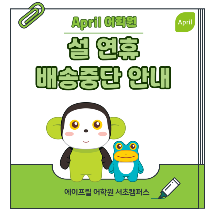 [April 서초]2026년 설 연휴 도서 배송 중단 및 마감 일정 안내