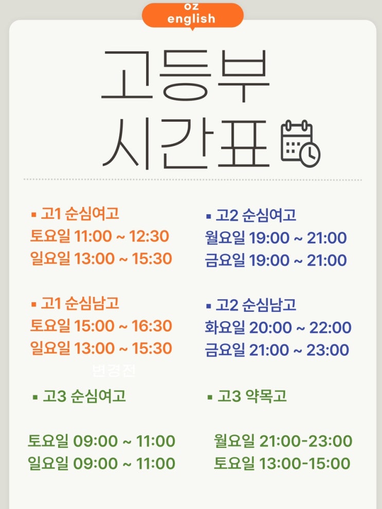 26년 3월개강 ★고1 내신 시간표________________ [이룸영어학원/ 해성여고/휘경여고/청량고/동대부고/대광고/경희고]