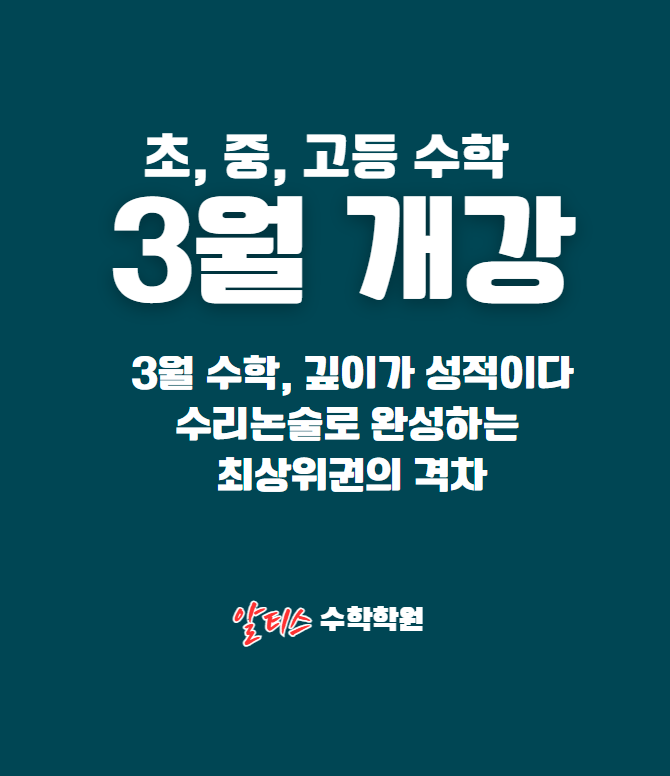 3줄 요약 3월 새 학기는 초등의 습관, 중등의 격차, 고등의 입시 전략이 결정되는 가장 중요한 **'골든타임'**입니다. 내신·수능 정복은 물론 출제자의 의도를 간파하는 **[더 크리에이터]**와 수리논술로 최상위권의 사고력을 완성합니다. 사고력 중심의 소수정예 밀착 관리를 통해, '아는 것'을 넘어 '설명하고 논증할 수 있는' 완전 체화를 실현합니다. 설레는 3월, 왜 우리 아이 수학 불안은 여전할까요? 새 책가방을 메고 학교로 향하는 아이의 뒷모습을 보며 대견하시다가도, 한편으론 걱정이 앞서실 겁니다. 특히 수학은 학년이 올라갈수록 '수포자' 비율이 기하급수적으로 늘어나는 깔때기....... <img src="https://blogthumb.pstatic.net/MjAyNjAyMjRfMjgz/MDAxNzcxOTEyNjIyMTAx.c-OW56XIcZQH3p9rdoB2cwlONtoUD7yqVO0QWVWQNYQg.zkIEXDVqQrZ7l0JxCTDz4INwnrSZqxym0Y5M6-QLRQYg.PNG/3%BF%F9_%B0%B3%B0%AD-_%B4%EB%C7%A5%C0%CC%B9%CC%C1%F6.png?type=s3" />