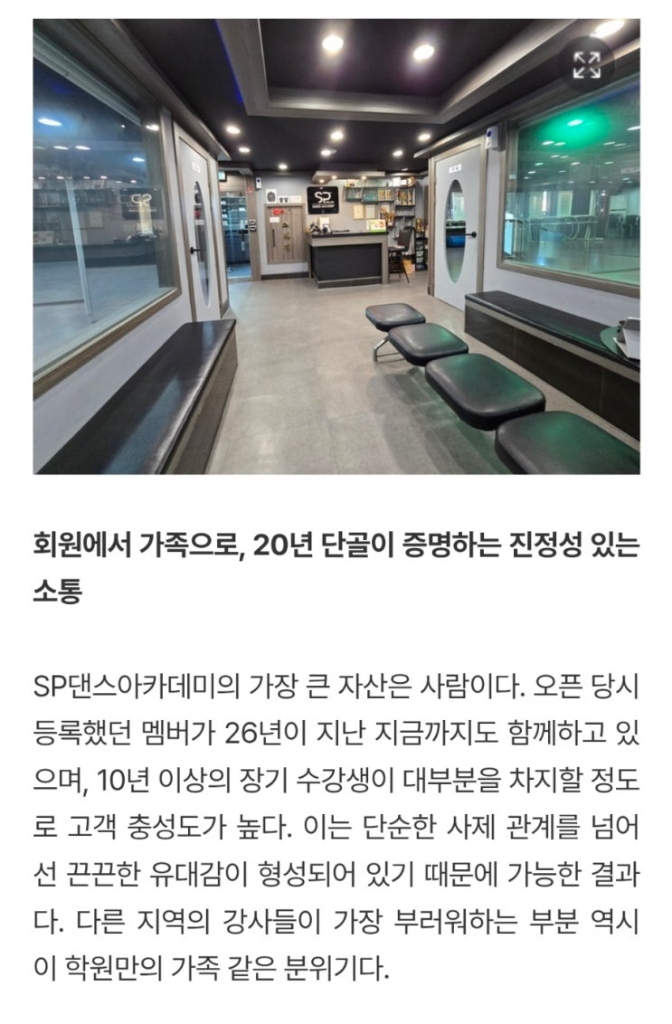 26년 동안! 흔들리지 않고 이어온 시간이 이렇게 하나의 결과로 남았습니다. 전문 지도자 양성과 전 세대를 아우르는 커리큘럼으로 지역에서 꾸준히 쌓아온 시간들이 이번 기사로 소개되었습니다. 단순히 말이 아니라 이미 결과로 나온 이야기입니다 SP는 잘 가르치는 곳을 넘어 오래 남는 사람이 있는 곳입니다. 앞으로도 SP댄스아카데미는~ ✔️춤을통해 ✔️건강과 즐거움 그리고 ✴️사람의 가치를 전하는 공간으로 계속 걸어가겠습니다~♡ #SP댄스전문학원 #마산 우수학원선정 #산호동댄스 #마산댄스자격과정 #세대공감댄스 #춤배우기 좋은곳 #전연령 #댄스지도자과정 #움직임스타트업 #양덕동댄스 #NC파크 <img src="https://blogthumb.pstatic.net/MjAyNjAzMjVfMTQz/MDAxNzc0NDE0OTAwNTMx.FrCdpdLLvNQWocN5eLoSpktlUah5X6mapncUD6gD-jIg.Pty96qMRO83dj3T-yCzlI23Q8mNpXj5edqIn7_9RigYg.JPEG/900%A3%DFScreenshot%A3%DF20260325%A3%DF133647%A3%DFSamsung_Internet.jpg?type=s3" />