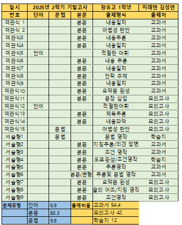장유고 영어학원 ㅣ 장유고 1학년 2025년 2학기 기말고사 영어시험 분석
