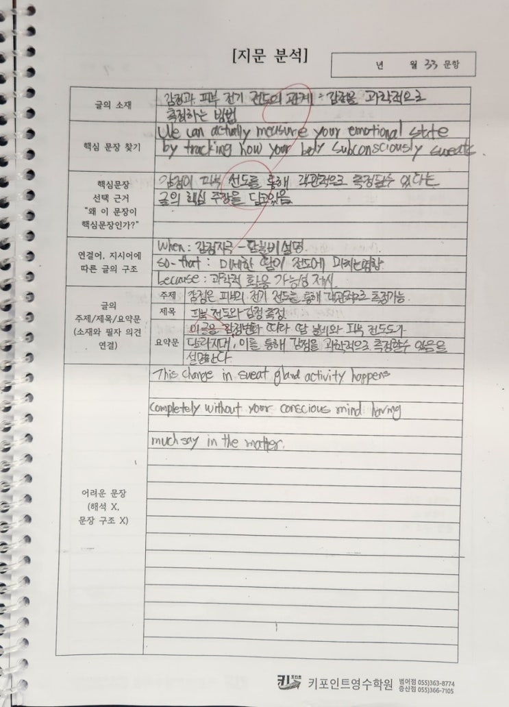 안녕하세요. 키포인트 영수학원입니다 단순히 단어만 외우고 문장을 해석하는 것만으로는 고등 영어의 긴 지문을 감당할 수 없습니다. 글의 논리적인 흐름을 파악하는 '구조독해' 능력이 진짜 실력입니다. 이번 3월, 우리 아이의 독해력을 고등 수준으로 끌어올릴 <중등 구조독해 기초반> 을 신설합니다. 핵심 내용을 정리해 드립니다. 1️⃣ 무엇을 배우나요? (Curriculum) 독해: 숲을 보는 훈련 (Structure Reading) 단순 해석을 넘어, 글의 구조를 뚫어보는 훈련을 진행합니다. * 소재 파악: 글감이 무엇인가? * 전개 방식 분석: 예시, 반박, 인과, 나열, 문제해결 등 글의 논리 구조 파악 * 주제 도출: 구조를 통해 소....... <img src="https://blogthumb.pstatic.net/MjAyNjAyMTNfMjQ2/MDAxNzcwOTY1Njk5NTY2.bPnx-1yXy2Gbxk_xBULrL9DDxFO2qd8UA69R9IGvMOAg.G-MrqnD70rl8yG8iDeptpK5szFbCoVhYQLP2_uxA4Log.JPEG/IMG%A3%DF0435.JPG?type=s3" />
