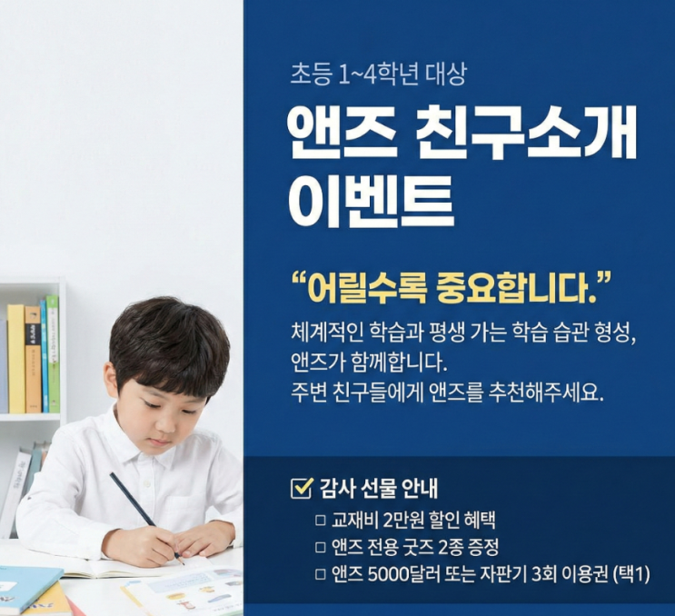신학기 이벤트친구소개 이벤트 앤즈 초등 저학년 대모집 26.2월~3월이벤트