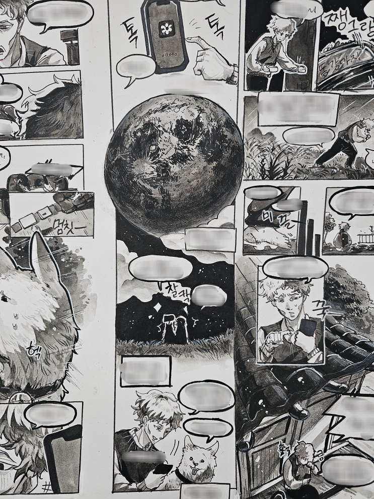 [충주 용산동 천년의 미소 미술학원/충주 애니 학원] :: 강렬한 대비감! 흑백 칸만화 달 채색하기