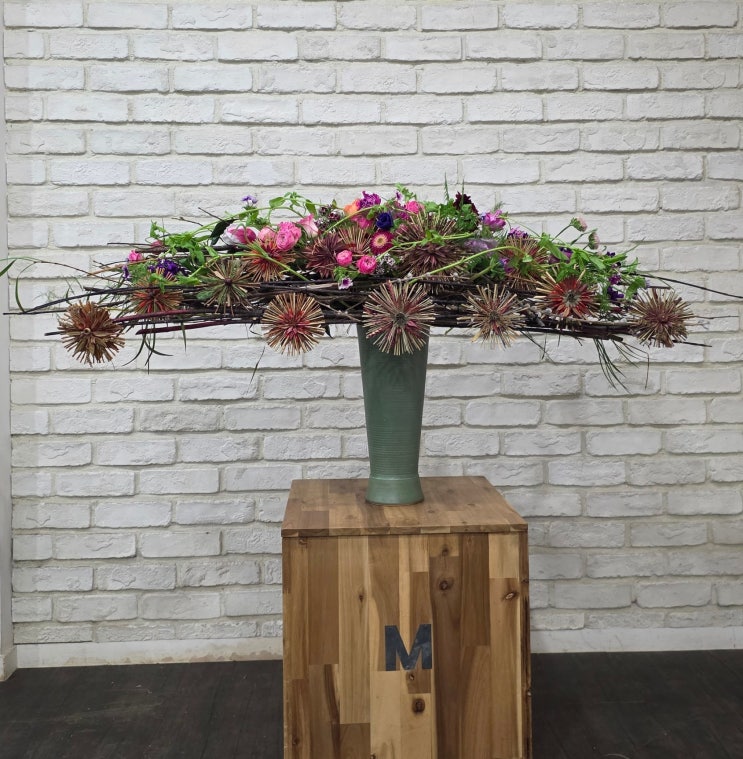 디자인 플로리스트 정규과정 수평형 꽃다발 수평 프레임 꽃다발은 평행형에서 진행되는 응용과정입니다. 평행형은 선의 화형으로 크게 평행과 교차로 나눠집니다. 수직과 사선은 평행으로 시작되고 그다음 과정에서 교차형을 배우게 되지만 수평형은 교차형보다 평행형의 난이도가 더 높기 때문에 교차형을 먼저 배우고 다음으로 평행형을 배우게 됩니다. 주요 재료명 ① 말채나무 Cornus alba L. ② 곱슬버들 Salix matsudana ③ 화살나무 Euonymus alatus ④ 동백나무 Camellia japonica L. ⑤ 플록스 Phlox paniculata ⑥ 장미 Rosa hybrida ⑦ 튤립 Tulipa gesneriana L. ⑧ 아스파라거스 Asparagus plumosus ⑨ 스타티스 Limonium sinuatum ....... <img src="https://blogthumb.pstatic.net/MjAyNjAyMjVfMjgw/MDAxNzcyMDAwOTI4MDM4.5_EFyaLlIZAbYa_PmWorzv-7jeKpgVMhVBqB390AoHMg._BnJ2871VJ0DuNSJvkDToxUiDPsm6L-rDLaMT11AS9Yg.JPEG/20260206_102316.jpg?type=s3" />