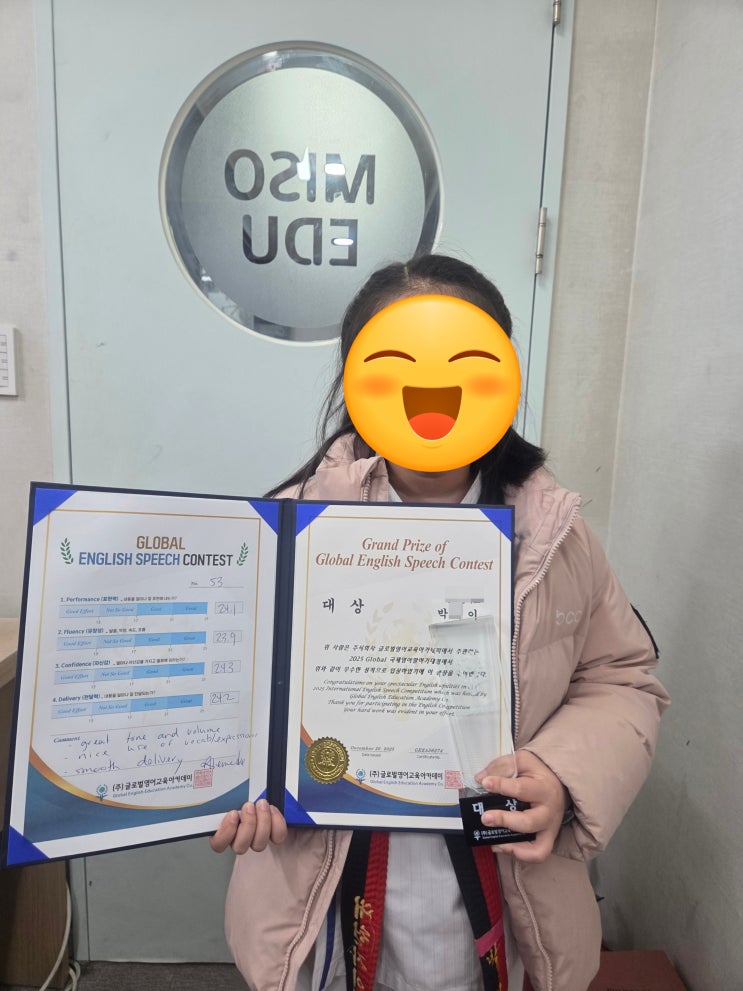 대연동 영어학원 미소에듀] 초등부 '12월 글로벌 국제 영어 말하기 대회' 수상