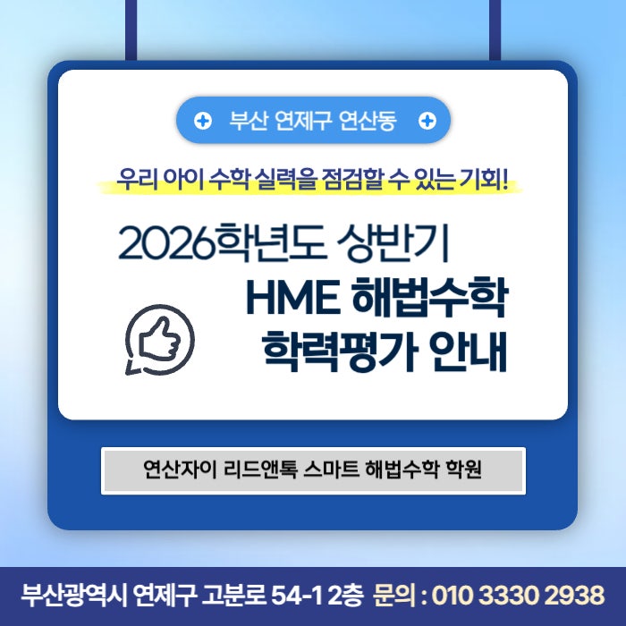 부산 연제구 연산동 HME 해법수학 2026 상반기 학력평가 안내 - 우리 아이 수학 실력을 점검할 수 있는 기회!
