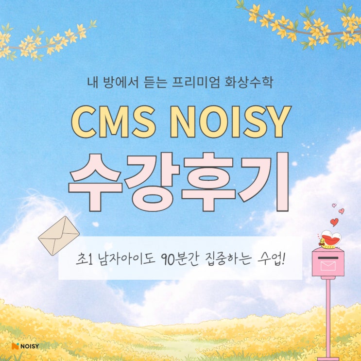 안녕하세요! 초등 사고력수학의 명가 CMS가 만든 실시간 온라인 클래스, NOISY 입니다 :) 오늘은 노이지를 수강하고 계신 학부모님의 리얼 후기를 소개해 드립니다 :) #체계적인진행 #초1도집중 #빠르고편한소통 #기대되는수업 초1 남자아이도 90분 집중하는 수업! 어머님께서는 CMS 사고력 수학을 고민하다가 화상수업 노이지를 알게 되셨다고 해요 레벨테스트와 등록 과정도 온라인으로 체계적으로 진행되어 처음부터 신뢰가 갔다는 후기를 전해주셨습니다 흥미가 없으면 금방 멍 때리는 초1 아이인데, 90분 수업 동안 집중해서 참여하는 모습이 정말 놀라웠다고 해요. 노이지는 저학년 친구들도 수업에 잘 참여할 수 있도록 스토리....... <img src="https://blogthumb.pstatic.net/MjAyNjAzMTJfMjMx/MDAxNzczMjk4NDI0NTA5.j3OEVC8vyqB7_C1XwUqv6ScGSt7xqa-Vn3_wIpiJZEsg.C45L9nl3iwpp77UIcqqaNuHMLaFBzsR68-5_HyVFv64g.JPEG/3-2_%BA%BD%C7%D0%B1%E2_%B8%AE%BA%E4_%C5%DB%C7%C3%B8%B4_1.jpg?type=s3" />