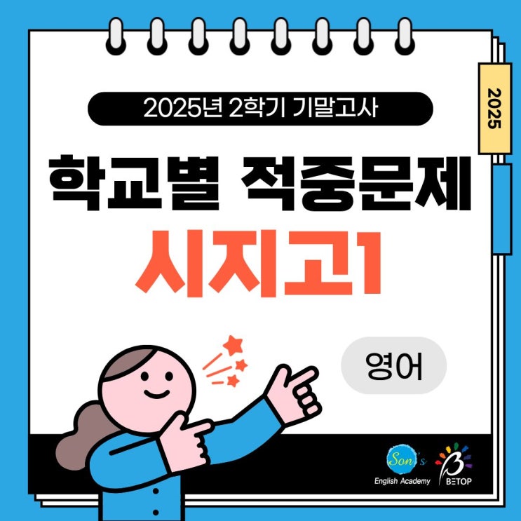 손하! 안녕하세요. 손샘영어 고등부입니다 :) 어느덧 2025학년도 2학기 기말고사가 마무리되었습니다. 이번 기말고사 기간 동안 손샘영어 고등부에서는 학생들이 시험에서 실력을 충분히 발휘할 수 있도록 끝까지 꼼꼼한 내신 대비를 진행했는데요~ 손샘영어 고등부는 매 학기 학교별 기출 시험 분석을 통해 출제 경향을 정확하게 파악하고, 학생들이 시험에 꼭 필요한 부분을 효율적으로 준비할 수 있도록 지도하고 있습니다 :) 이러한 분석을 바탕으로 학교별 출제 스타일에 맞춘 출제 예상 문제를 직접 제작하여 수업과 자료에 적극적으로 활용하고 있는데요! 오늘은 시지고 1학년의 2025학년도 2학기 기말고사 내신 출제 경향 분석과 실제 시....... <img src="https://blogthumb.pstatic.net/MjAyNjAxMjVfMjA2/MDAxNzY5MzI0NTE2NDA4.1f9977RqwPdOehIdO73wE0iIrJMBQhhtzN6Ca5KcbScg.-yQjCUL6Cmz3YYxibTTGGlrbcLnEbFzu8p70Qyif7-kg.JPEG/1.jpg?type=s3" />