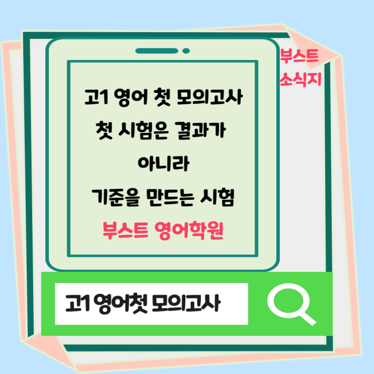 부스트 영어입니다^^ 3/24일 고1학생들이 처음 치르는 영어 모의고사, 솔직히 실력보다 더 중요한 게 있습니다. 시험 구조에 익숙해지는 것! 시험 치는 방식에 적응하는 것 3월 모의고사는 ‘등급을 만드는 시험’이 아니라 ‘고등 영어 시험에 적응하는 시험’입니다. ◆고1 3월 영어모의고사는 어떤 시험인가요? 이 시험은 실력을 재는 시험이라기보다, 고등학교 영어 시험이 어떤 구조인지 경험하는 시험이에요. 문제 유형이 어떤지 시간은 얼마나 빠듯한지 독해가 중학교랑 얼마나 다른지 듣기 난이도는 어떤지 이걸 체감하는 시험입니다. ⇒ 점수보다 중요한 건 어디서 막히는지 파악하는 것입니다. ◆시험 기본 정보 시험 시간: 총....... <img src="https://blogthumb.pstatic.net/MjAyNjAzMDFfMjM2/MDAxNzcyMzM4MDI4NTkw.nj3jyqMSZw2YHCOOT974uQOeuSY1OKVdnk_Cw4o-zZkg.Y6ni9Ps-hQNYGk8N2DEfXIHxj_QQeWBbh_okUi6NfjEg.PNG/%EA%B3%3F1_%3F%98%81%3F%96%B4%EC%B2%AB%EB%AA%A8%3F%9D%98%EA%B3%A0%EC%82%AC.png?type=s3" />