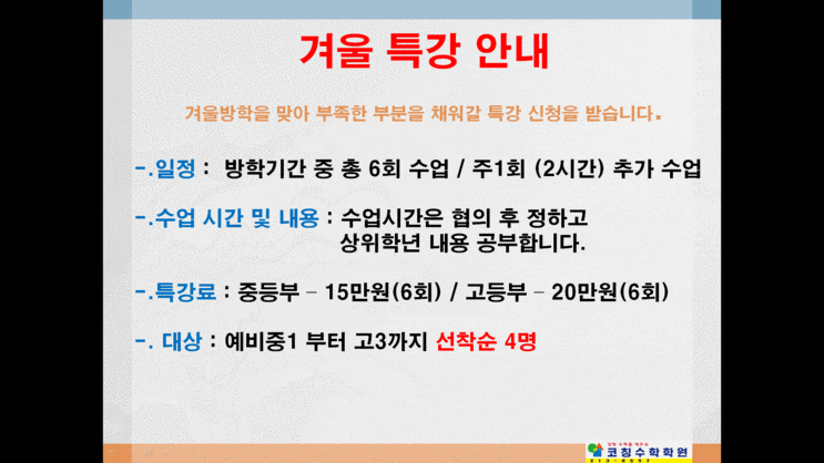 겨울방학 특강 안내