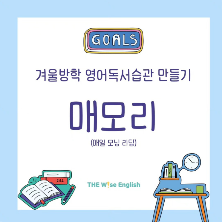 안녕하세요, 더와이즈영어 Soo원장입니다. 유난히 포근했던 12월이 무색하게, 1월이 되자마자 매서운 추위가 찾아왔습니다. 마침 어제오늘 인근 초등학교들도 일제히 방학을 시작했는데요. 갑자기 추워진 날씨 탓에 따뜻한 이불 속 유혹이 그 어느 때보다 강렬한 시기입니다. 하지만 이 시기, 춥다고 웅크리고만 있으면 아이들의 방학은 금세 '늦잠'과 '스마트폰'으로 채워지기 쉽습니다. 한번 무너진 수면 패턴과 학습 습관은 개학 후에도 되돌리기 참 어렵지요. 가장 게으르기 쉬운 시간에, 가장 알찬 습관을 만듭니다. 이번 겨울방학에도 어김없이 <매모리: 매일 모닝 리딩>이 돌아왔습니다. 아침 9시, 선생님 그리....... <img src="https://blogthumb.pstatic.net/MjAyNjAxMDhfMjQ1/MDAxNzY3ODIwNjQyMDky.iAeCCqWfr4OqpmJZpwwbVJOg3Dhx4SxBqRRRm2rZ4N4g.I433490oOL0z7fRs4dmAuoG3CRla6qNd3aiUmn6Mh5Ag.PNG/1.png?type=s3" />
