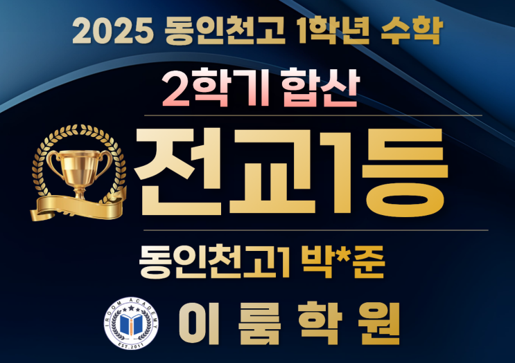 이룸학원 드디어 이루어내다!! 동인천고1 2학기전체 수학 전교1등, 영어 전교1등 배출