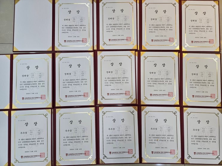 안녕하세요 연세리더학원입니다. 오늘은 우리 학원 학생들이 2025년 하반기 고려대 수학경시대회에서 좋은 결과를 얻어 자랑을 하려고 합니다!!! ㅎㅎ 초등 3학년 학생부터 중등 1학년 학생까지 참여를 하였는데 경시대회를 준비한 학생 모두 상을 받았습니다 Wow!!! (Unbelievable~~) 단 5주 동안 준비했는데, 최우수상부터 장려상까지 상을 싹쓸이 했네요~! 인동초등학교, 동부초등학교 학생들은 수학 경시대회가 처음으라 긴장도 많이 하고 실수도 한 것 같아 약간의 아쉬움이 있지만, 시험 공부에 적응이 끝난 상인천중학교 형들은 최우수상, 우수상을 받았습니다 축하해요~! 우리 학생들이 상을 많이 받아서 연세리더학원도 상을 받았습니다....... <img src="https://blogthumb.pstatic.net/MjAyNTEyMjdfMjk5/MDAxNzY2ODIzNzY4OTI1.5MzvZPEWq-k4mnCll0vKxULhyhjsUjso0fWjX4FQtM8g.nlxeUFKsJsqeZ62hNVkj6Q2JauaaUpa4uhw_p7Y9wN4g.JPEG/KakaoTalk_20251227_171538995.jpg?type=s3" />