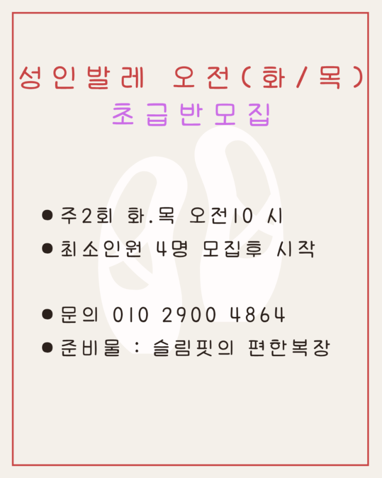 청라 초급 오전성인발레 개설모집중