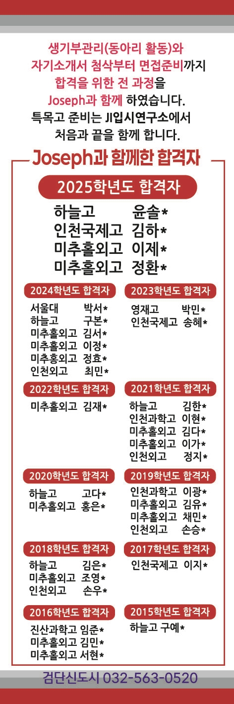 인천국제고 합격자 학부모 후기[검단신도시영어학원] 안녕하세요. 이번에 인천국제고등학교에 입학하게 된 최윤설 학생의 엄마입니다. 매년 EiE 밴드를 통해 외고·특목고·국제고에 합격한 학생들의 소식을 접하며 부러워만 하던 제가, 이렇게 직접 합격 후기를 쓰게 될 줄은 꿈에도 몰랐습니다. 아이의 성장과 합격의 과정을 함께해 주신 eie고려대국제어학원 검단신도시 캠퍼스 원장님과 선생님들께 진심으로 감사 인사를 전합니다. 저는 세 아이를 키우면서 초등 6학년 때까지는 비교적 열성적으로 챙겼지만, 그 이후부터는 아이들이 스스로 해 나가길 바라는 편이었습니다. 워킹맘이다 보니 모든 과정을 세세하게 살피기 어려웠고, 초등 시기....... <img src="https://blogthumb.pstatic.net/MjAyNjAxMDRfNDQg/MDAxNzY3NTE4MTA1MzY2.IxuT364GTeMlQ2wgUBjKrLmNHnQdA_lqIVVjsv_lfQkg.DoPs7VU1IPW-bBHDYcdcCDDBSYd-O0YDIgH0v7q_zqwg.JPEG/KakaoTalk_20250306_093127991.jpg?type=s3" />