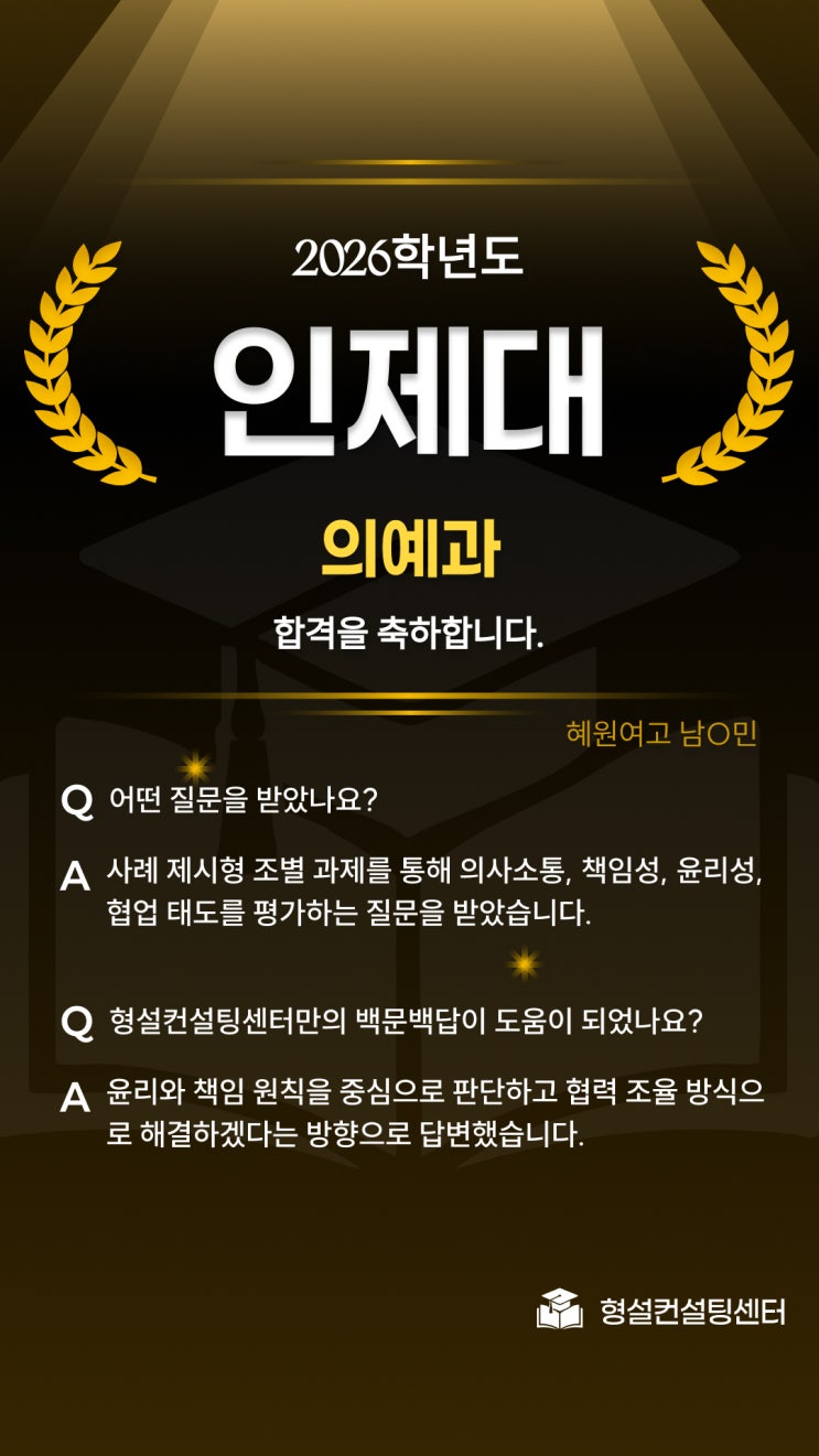 형설컨설팅센터 2026년 수시 합격자 SKY & 의대MMI 합격자