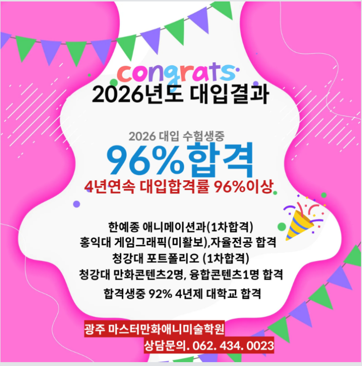 광주만화학원-마스터만화애니학원2026대입합격을축하합니다.