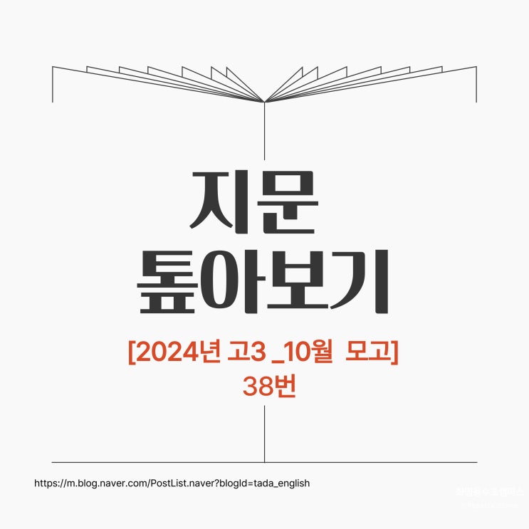 안녕하세요, 로제타스톤 영어교습소 화명 용수초 캠퍼스입니다^^ 지문 톺아보기 이번 지문은 2024년 10월 서울특별시 교육청 학력평가 38번 지문입니다^^ 이 포스팅은 단순히 영어 지문을 해석하거나 문제를 푸는 데서 끝나지 않아요. 학생들이 직접 보고, 스스로 이해할 수 있도록 시각 자료와 실제 생활 속 상황을 연결해 만든 콘텐츠예요. 문장 하나, 그림 하나도 “이걸 보면 아이들이 조금 더 쉽게 이해하겠지?” 하는 마음으로 준비했답니다. 제가 바라는 건 단순한 지식 전달이 아니에요. 아이들 머릿속에 오래오래 남을 수 있는, 깊이 있는 개념을 만들어주는 것이 목표입니다. 정확한 영어 해석은 이미 해설지에 잘 정리되어 있으니, 이....... <img src="https://blogthumb.pstatic.net/MjAyNTEyMDlfMjk2/MDAxNzY1MjU0MzI1NjU0.vCifGvqSfM8d_SstPGJ1nUGxZzmNGrSNAqaZdIT7GD8g.oC-HE4qPrjPErVAV9608AzPAPnAQ-jrtH0nKu7E9lHwg.JPEG/%C1%A6%B8%F1%C0%BB-%C0%D4%B7%C2%C7%D8%C1%D6%BC%BC%BF%E4_-005.jpg?type=s3" />