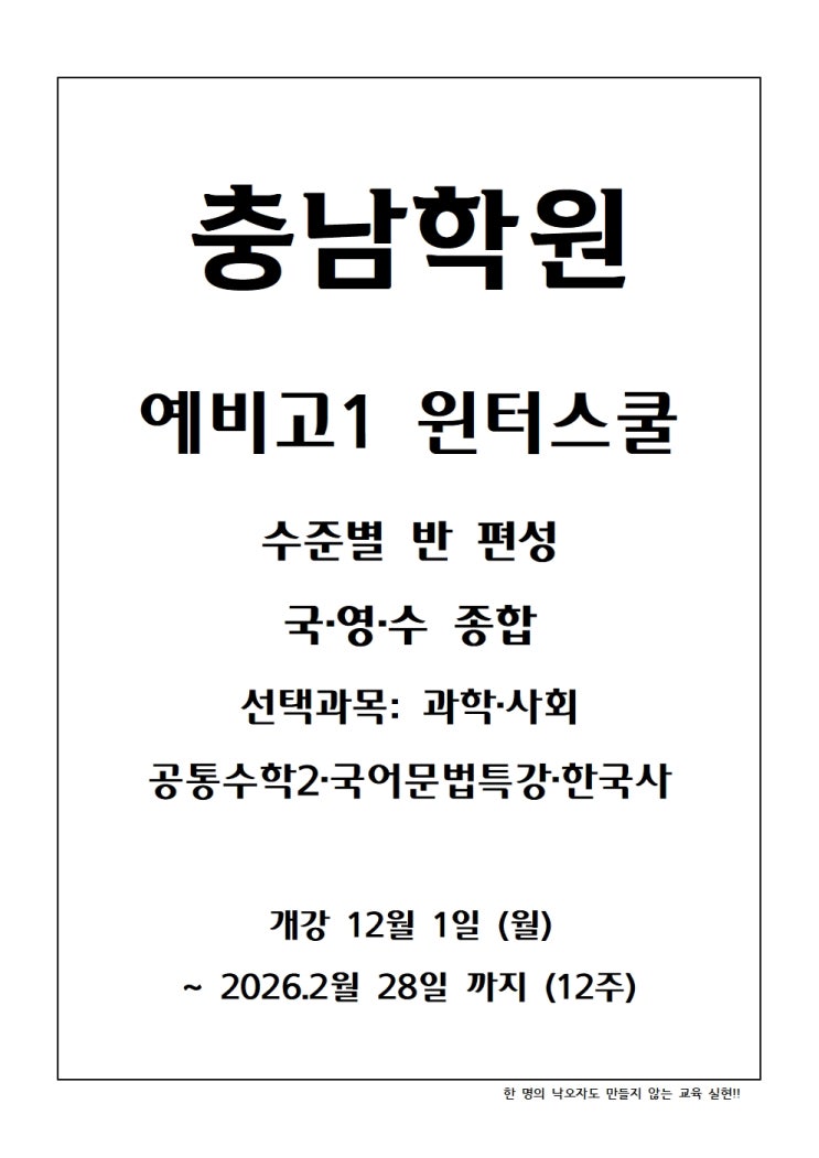2026학년도 예비고 윈터스쿨 안내 및 과목별 진도계획