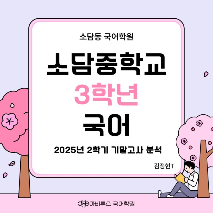 안녕하세요 프리미엄 내신.수능 국어 전문학원 아비투스 국어입니다. 소담동 국어학원 아비투스 국어의 김정현T가 분석한 소담중 3학년 국어 2025 2학기 기말고사 출제 경향에 대해 안내드립니다. 총평 이번 소담중 3학년 2학기 기말고사 국어는 교과서 내용을 충실히 이해했는지를 기본으로, 외부 지문과 <보기> 자료를 활용하여 학생들의 종합적인 사고력과 응용력을 평가하는 데 중점을 둔 시험이었습니다. 단순히 내용을 암기한 학생에게는 다소 까다롭게 느껴질 수 있는 문제들이 다수 출제되었습니다. 특히 배점이 높은 문항들을 중심으로 변별력을 확보하려는 의도가 뚜렷하게 나타나, 체감 난이도는 중상 수준으로 분석됩니다. 문....... <img src="https://blogthumb.pstatic.net/MjAyNjAyMjFfMTAy/MDAxNzcxNjYzOTc1NjEx.rlW-MdU2hP-Qy-6YdiTflmPMCUcwPeH8BxS6Je9PoL8g.CsFVD06FUQK5jAO6xMowUz4FIfatt4k3rm_y88ZopOgg.JPEG/1.jpg?type=s3" />