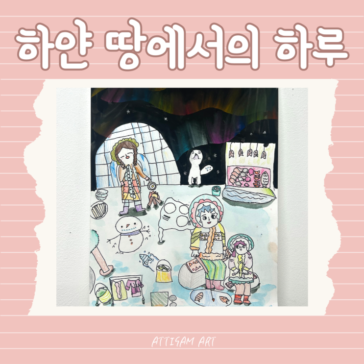 이누이트족의 하루를 상상하며 이번 수업은 [하얀 땅에서의 하루]라는 제목으로 북극의 하얀 땅에서 살아가는 이누이트족의 하루를 상상해 보는 시간이에요~! 눈으로 덮인 땅, 차가운 공기, 그리고 그 안에서 살아가는 사람들의 모습까지 이야기로 먼저 풀어보며 수업을 시작했어요~! 이누이트족의 의상도 알아보고, 인체 드로잉까지! 일석이조 수업 이번 수업의 중심은 이누이트족의 의상과 사람의 움직임이었어요. “이렇게 두꺼운 옷을 입으면 몸은 어떻게 보일까?” “팔과 다리는 어떻게 움직일까?” 이누이트족의 겨울 의상을 살펴보며 자연스럽게 인체의 형태를 관찰하고, 서 있는 모습, 걷는 모습, 물건을 들고 있는 모습까지 다양....... <img src="https://blogthumb.pstatic.net/MjAyNjAyMjVfMTg3/MDAxNzcxOTkxNDI5MzAx.wKwT8is-JHGsyDA5LysYgLFu9YKVJHOFvIyZ9zEy1lcg.rsM-8RB9cQbPsHF2HkX3V14kQJfmWOw20SXMVmjRW_8g.PNG/%C1%A6%B8%F1%C0%BB-%C0%D4%B7%C2%C7%D8%C1%D6%BC%BC%BF%E4_-001_%287%29.png?type=s3" />