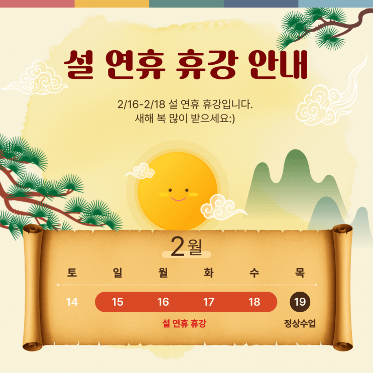 [영통 청담어학원] 설 연휴 휴강 안내 (2/16-2/18)