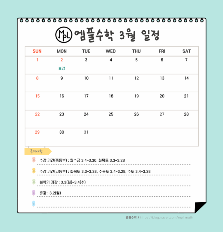 [엠플수학] 3월 일정
