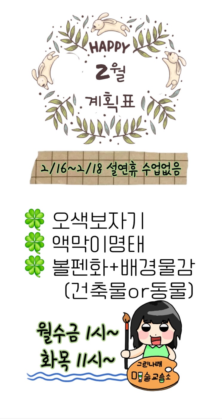 성북구 삼선동 미술학원-그린나래 2월 계획안