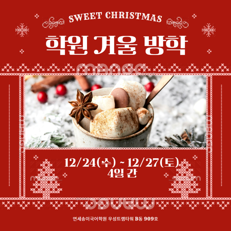 [학원겨울 방학] 12/24(수) ~ 12/27(토) 휴원