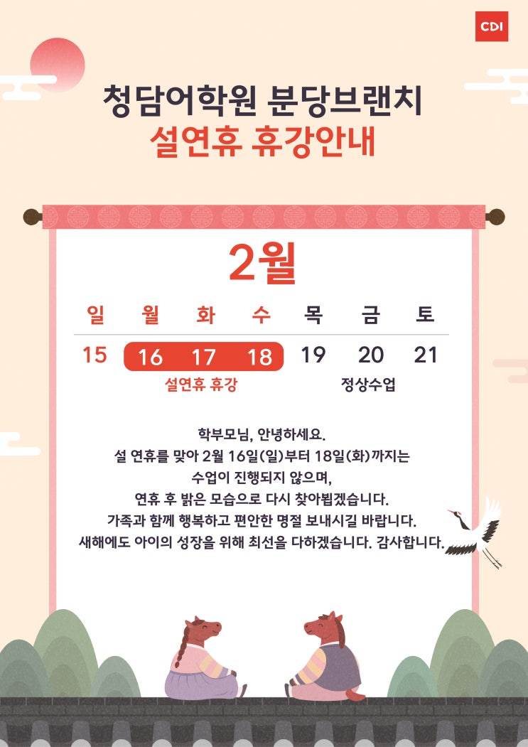 2월 설연휴 휴강안내