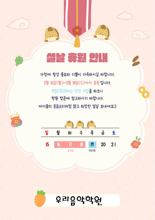 우리음악학원 설연휴 안내