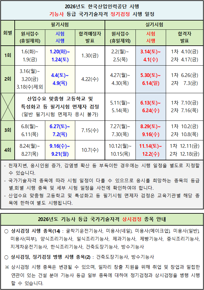 2026년 3D프린터 운용기능사 시험 일정