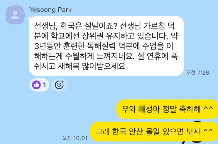 안녕하세요 리드앤톡 벨라쌤입니다~ 만남이 있으면 헤어짐이 있는 법~ 20년 이상 영어를 가르치면서 익숙한 만남과 이별이지만, 특별히 성실하게 마음을 다했던 친구들은 좀 더 헤어지는 아쉬움이 남는 거 같습니다. 해양중 3학년 마친 한 남학생이 3년간 해양센터에서 열심히 하다 모로코 카사블랑카 미국학교로 갔습니다. 한국에서 초등학교2-3학년까지 하고 해외 미국학교에서 학교를 다니다 중1되면서 3년간 한국에서 학업을 할 기회가 생겼는데, 이 친구 학업과 인생에 있어서는 정말 획을 긋는 3년이 아니었나 합니다. 3년의 어떤 점이 특별한가요? 먼저 이 친구는 모국어가 초등저학년때 이집트 국제학교로 갔어서 일상 한국어는 유창하지....... <img src="https://blogthumb.pstatic.net/MjAyNjAyMTlfNTEg/MDAxNzcxNTA5MDEwMzE5.SXNgGQR-EB4Ri3sF6hMk1tuBci9c9A68KXuRYl8C8Dcg.MwQG4fVHt8SDjwM-zL4XAqUTZgtNn9UOu1w7tDRxDgYg.JPEG/KakaoTalk_20260218_192528217_01.jpg?type=s3" />