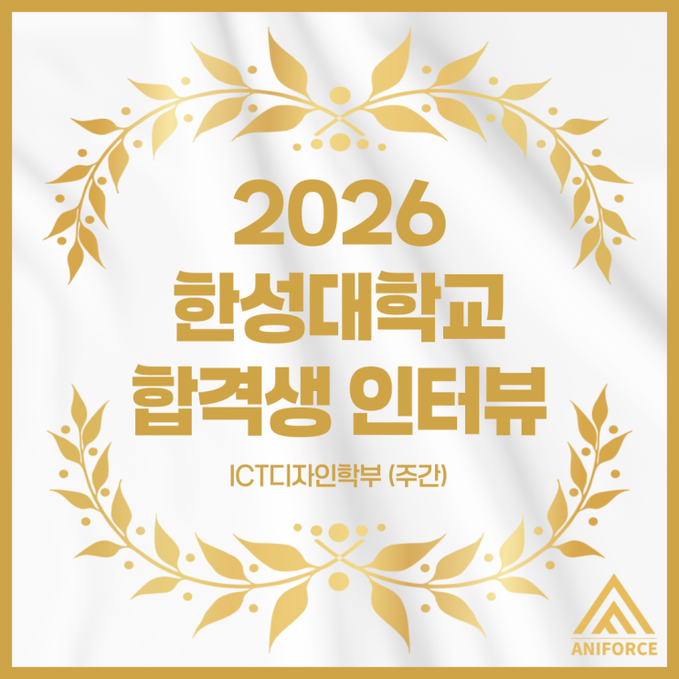 안녕하세요! 일산 주엽 애니포스 만화학원입니다! 오늘은 2026 일산 애니포스 합격생 인터뷰를 준비했는데요! 이번 학생은 서울에 있는 한성대학교 ICT디자인학부 (주간) 에 수시 상황표현 전형으로 합격한 합격생이랍니다! 해당 학생은 비교적 늦은 때인 고3 5월부터 만화/애니 입시를 시작하였으나 자신의 뛰어난 열정과 실력, 그리고 선생님들의 지도로 서울 4년제 대학교에 합격하였는데요! 그럼 지금부터 인터뷰를 시작하겠습니다! 2026 한성대 ICT디자인학부 합격생 인터뷰 자기소개 안녕하세요. 2026학년도 한성대 ICT 디자인학부 (주간) 에 입학 예정인 박O서 라고 합니다. 지원동기 어릴 적부터 그림 그리는 것과 게임, 웹툰, 애니메이....... <img src="https://blogthumb.pstatic.net/MjAyNjAxMTJfMTQ3/MDAxNzY4MTkyMTczMzIx.mVxLjWJlWya-J1uAqImugdkK7eMAmshzdCQljBU8BAsg.8ohCPyxjhgSAbqNTWKYHWF2hEWR_KNKSrsnCn-CBcBwg.PNG/IMG_6757.png?type=s3" />