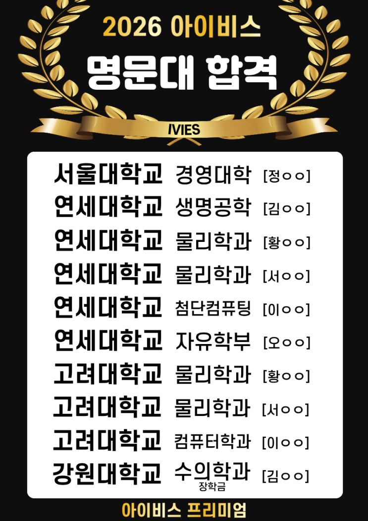 [아이비스 프리미엄 국어영어수학] 2026 명문대학교 합격 결과