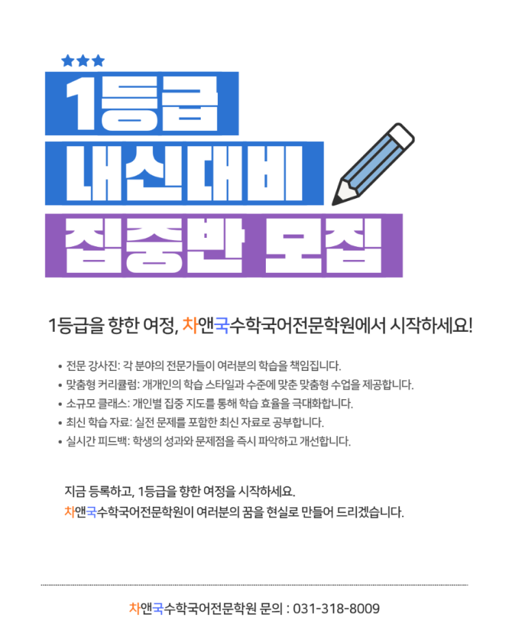 1등급 내신대비 집중반 모집