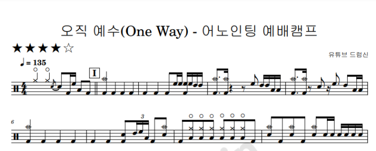 오직 예수(One Way) - 어노인팅ㅣ 드럼 악보