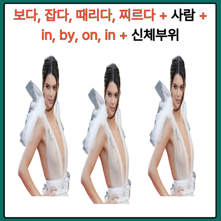 보다, 잡다, 때리다, 찌르다 + 사람 + in, by, on, in + 신체부위