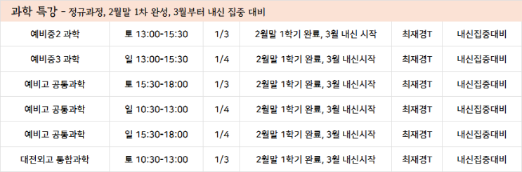 2026 퍼스트학원 1월 겨울방학 특강 시간표 - 대전 둔산동 입시전문 퍼스트학원